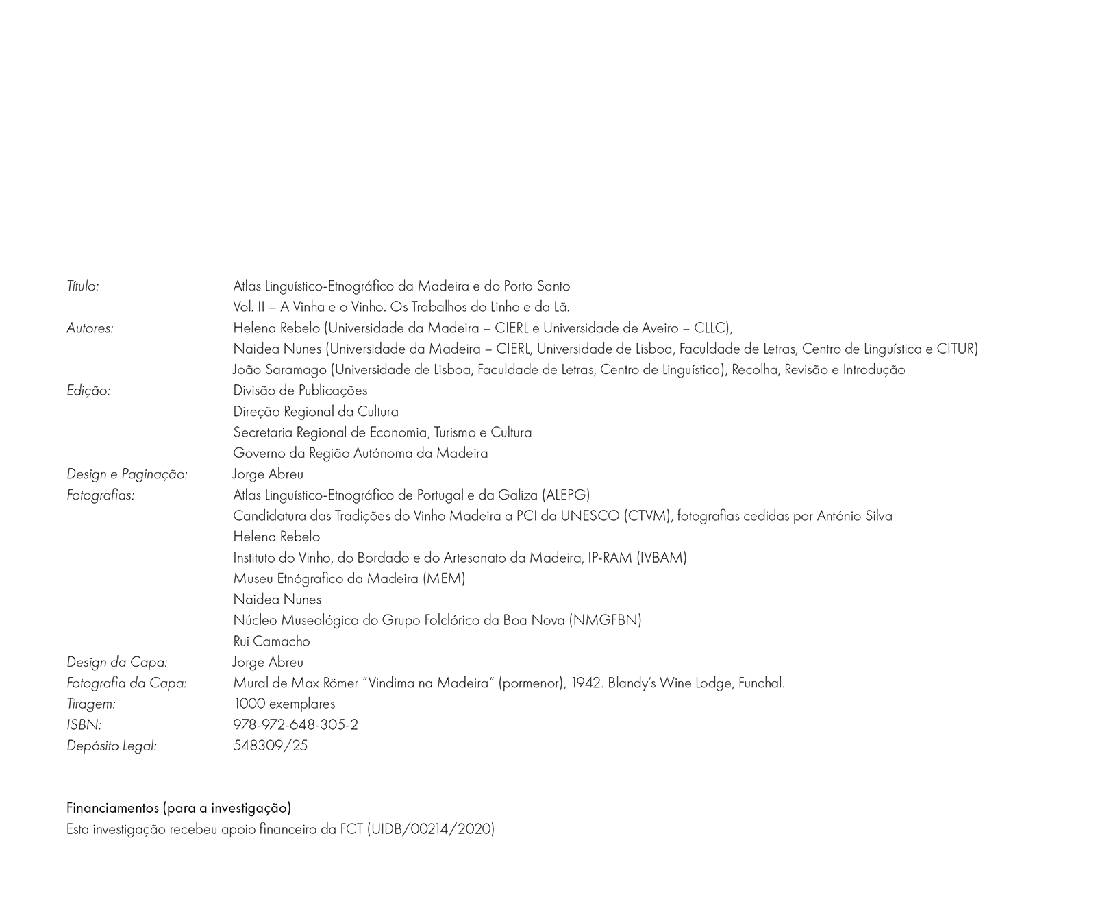Atlas Linguístico-Etnográfico da Madeira e do Porto Santo. A Vinha e o Vinho. Os Trabalhos do Linho e da Lã. Vol. II